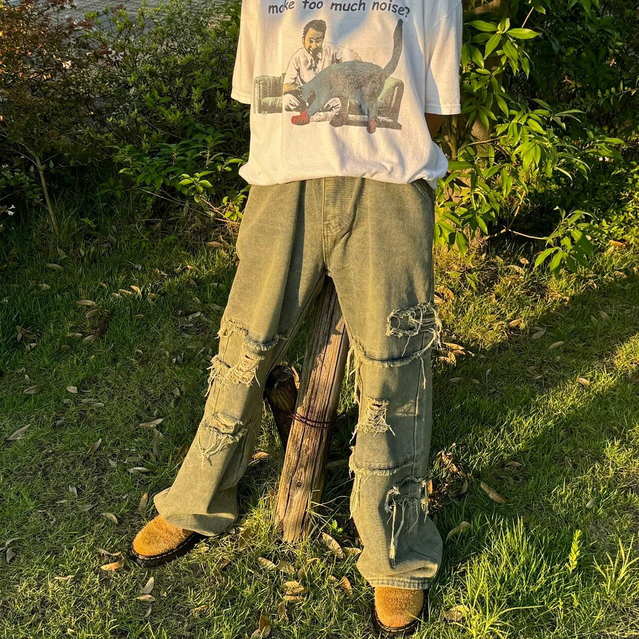表面のデザインが今流行りのダメージの作りになっているのが特徴!